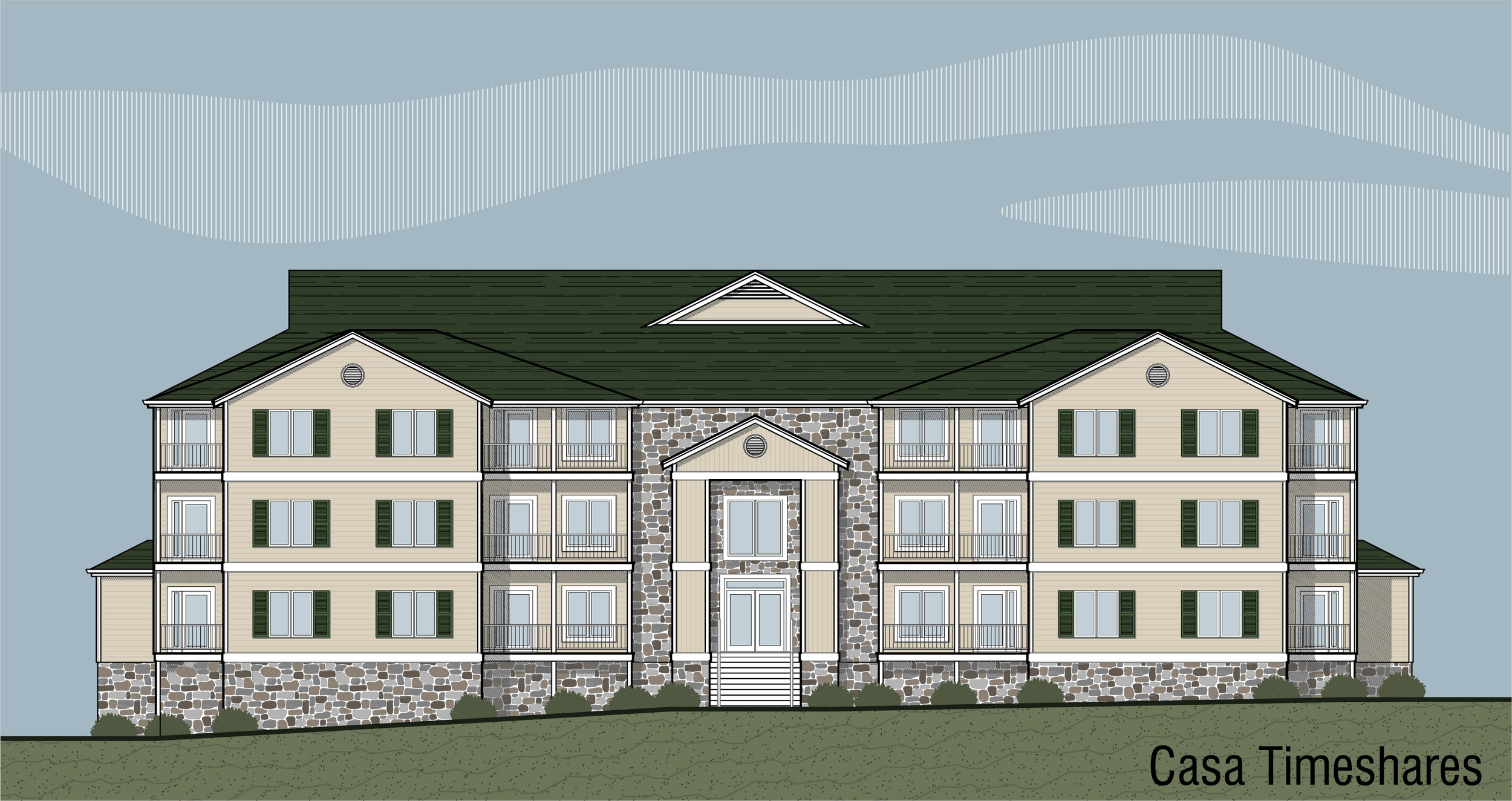 For the Woodstone Meadows area at Massanutten Resort two different but coordinating style buildings were designed to be mixed throughout the surrounding golf course. Originally the resort was only building and marketing two story townhomes, APR Associates suggested designing condos in a three story building instead which allowed the resort be able to sell and build more untis per acre. APR Associates worked with engineers to layout this forty-five building and growing subdivision.